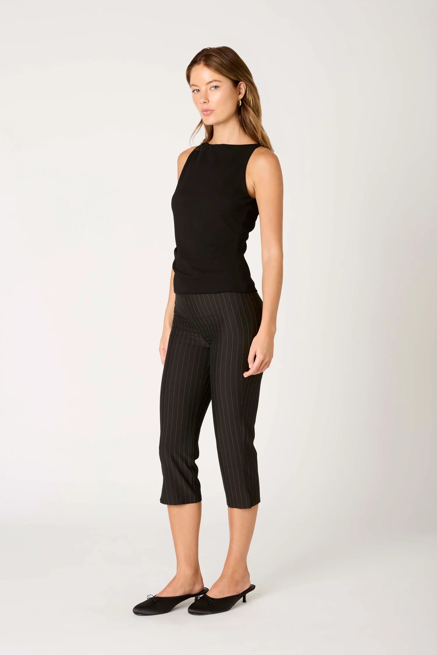 The Dom Top delivers crisp structure with a subtle edge. Framed by a clean boatneck neckline, this sleeveless silhouette is cut to flatter with a tailored bodice and a slight flare at the hem. Equal parts sharp and versatile, the Dom Top is designed to pair beautifully with polished trousers or a statement skirt.